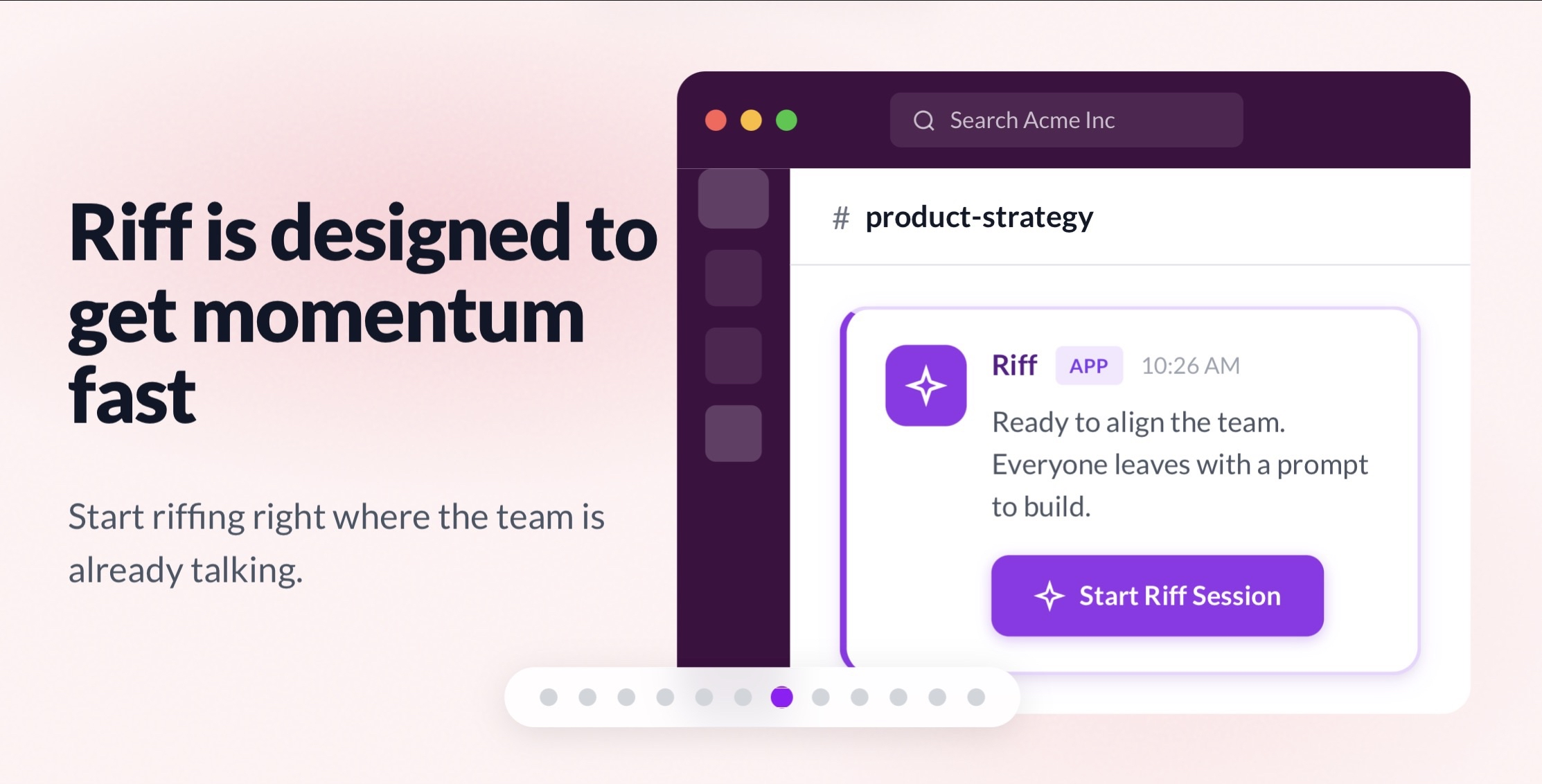 A product vision exploring how AI transforms team workflows. Turn scattered Slack context into shared prompts that teams can riff on together.
